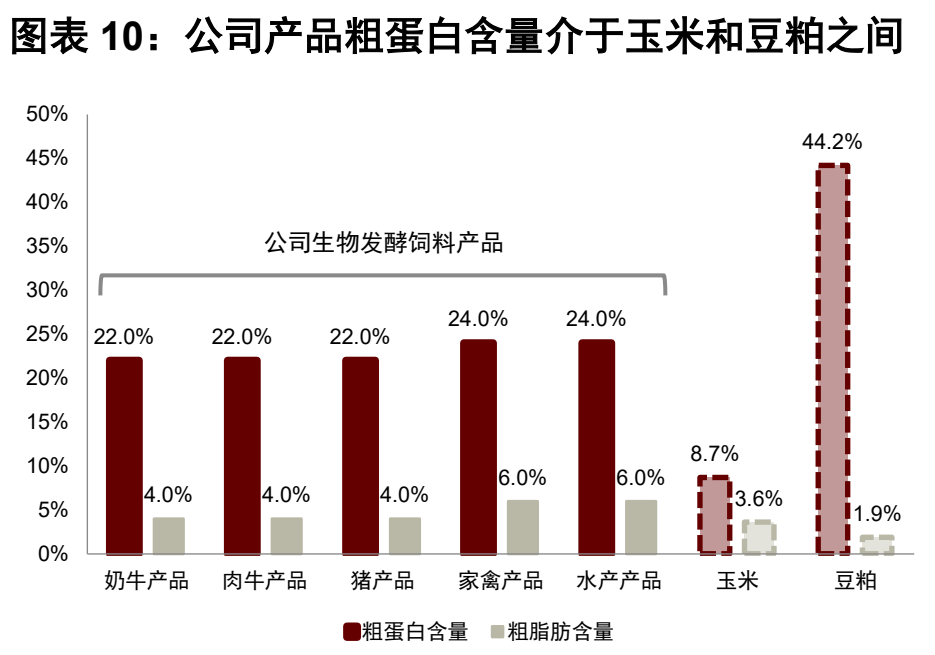 在營養(yǎng)性方面:公司產(chǎn)品富含粗蛋白、粗脂肪、酸溶蛋白等營養(yǎng)成分,其中,粗蛋白含量介于玉米和豆粕之間,能夠有效供給動物基礎(chǔ)營養(yǎng)物質(zhì),可部分替代常用飼料原料玉米、豆粕等進(jìn)行動物飼喂。
