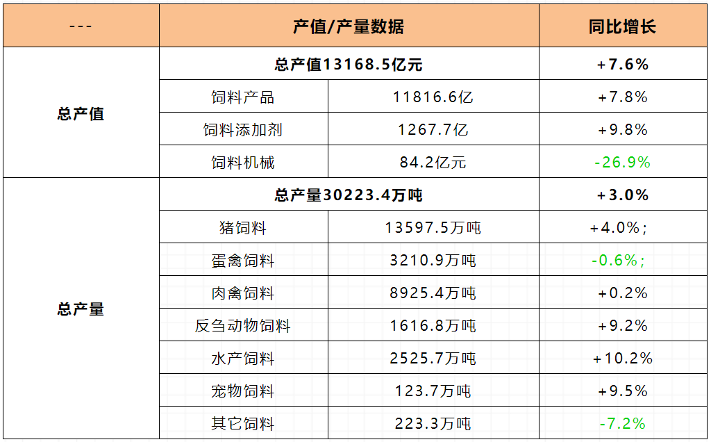 文件顯示:2022年,全國工業(yè)飼料產(chǎn)值、產(chǎn)量雙增長,產(chǎn)品結(jié)構(gòu)調(diào)整加快,規(guī)模企業(yè)經(jīng)營形勢總體平穩(wěn),飼料行業(yè)創(chuàng)新發(fā)展步伐加快。