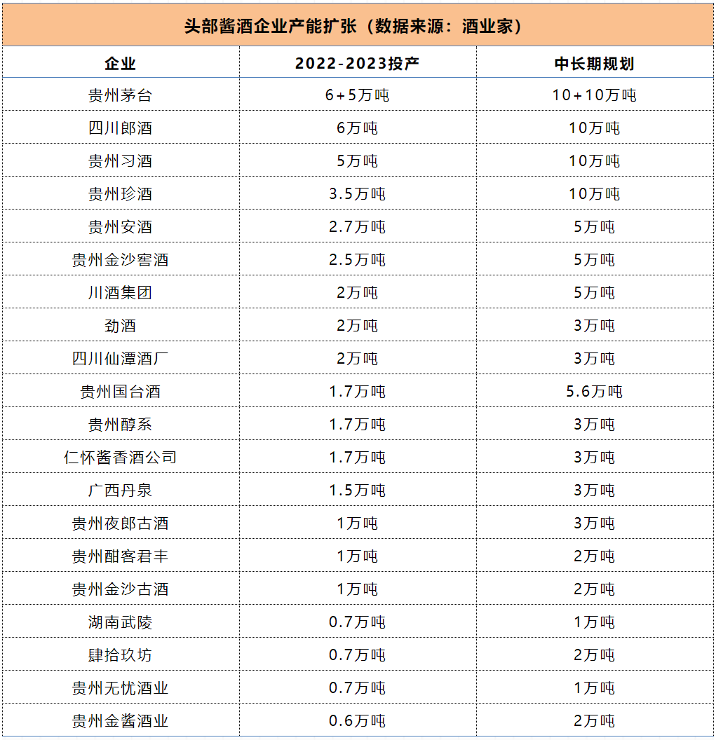 【產(chǎn)能】頭部醬酒企業(yè)產(chǎn)能軍備競賽提速,預(yù)計到2030年之前,我國醬酒產(chǎn)業(yè)整體產(chǎn)能將會突破100萬噸。
