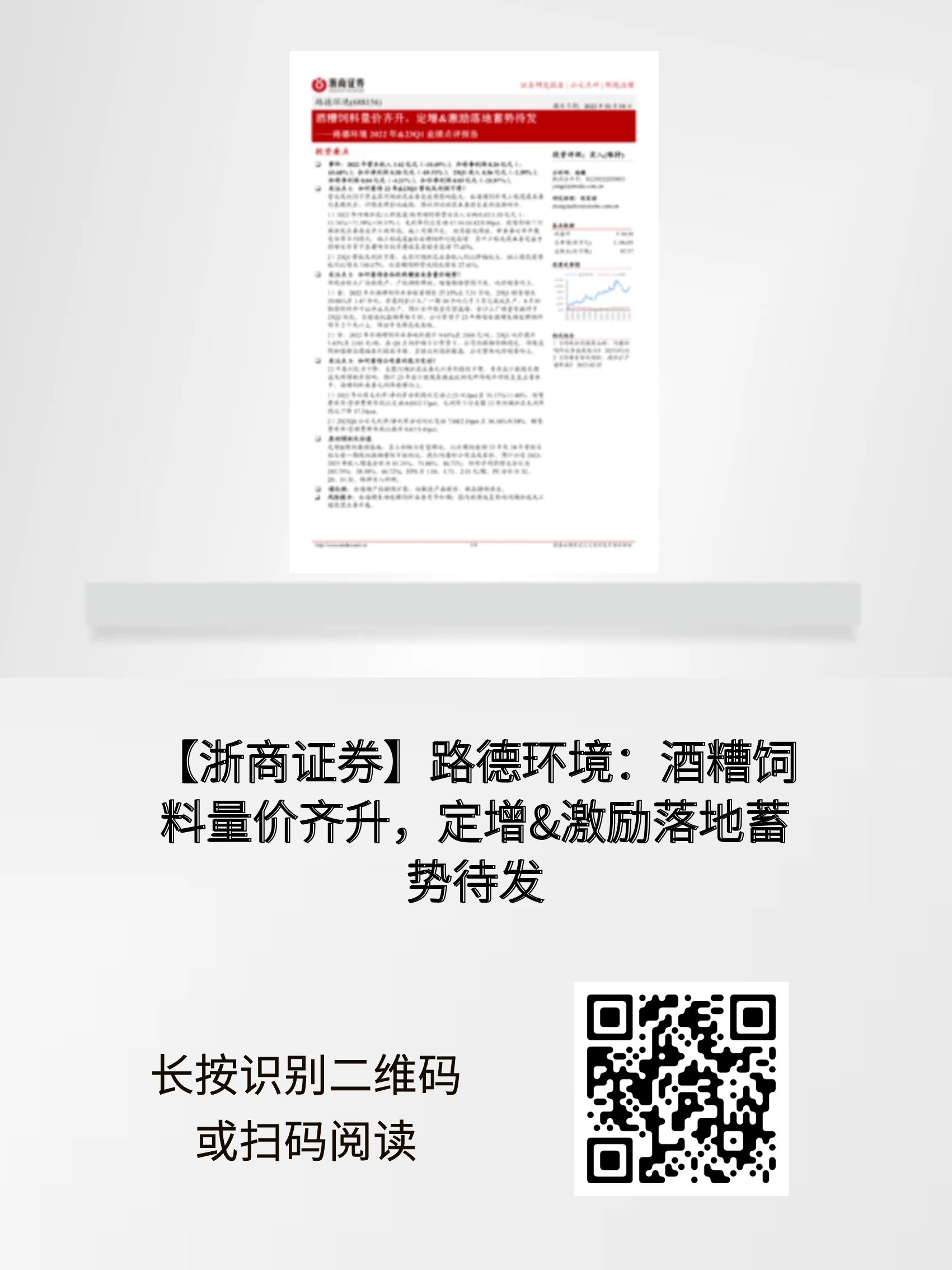 【點(diǎn)評(píng)報(bào)告】浙商證券點(diǎn)評(píng)路德環(huán)境:酒糟飼料量?jī)r(jià)齊升,定增&激勵(lì)落地蓄勢(shì)待發(fā)。