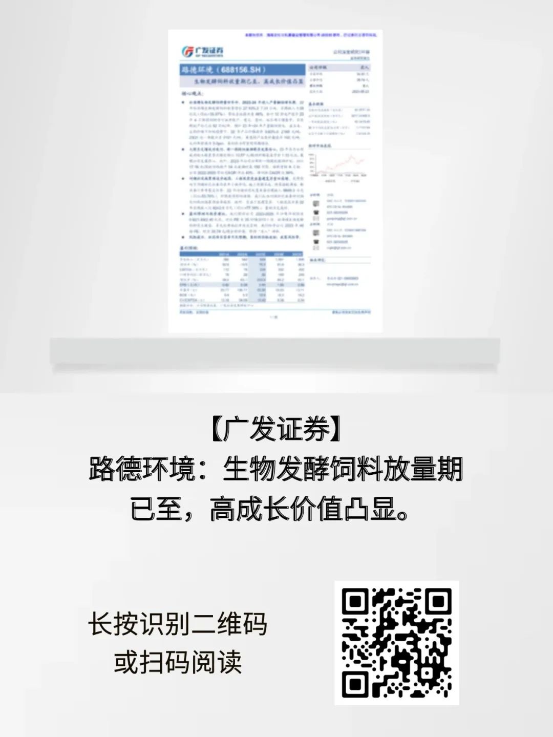2023年5月23日,廣發(fā)證券發(fā)布了以《路德環(huán)境:生物發(fā)酵飼料放量期已至,高成長價(jià)值凸顯?!窞橹黝}的深度證券研究報(bào)告,對(duì)公司業(yè)務(wù)發(fā)展進(jìn)行全方位點(diǎn)評(píng),并維持了“買入”評(píng)級(jí)。