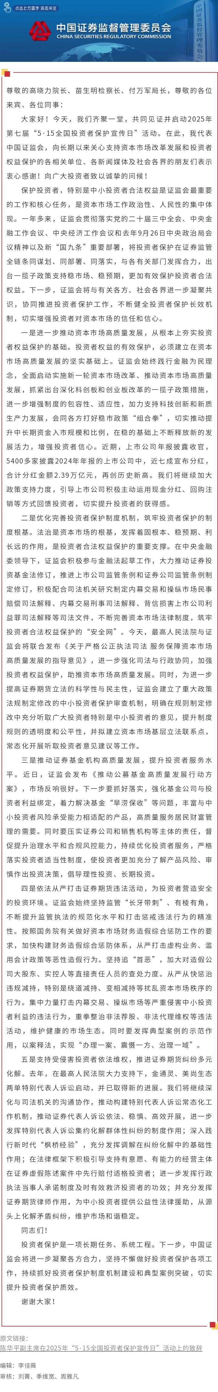 上一篇:【路德·轉(zhuǎn)載】證監(jiān)會(huì)舉辦2025年“5·15全國投資者保護(hù)宣傳日”活動(dòng)