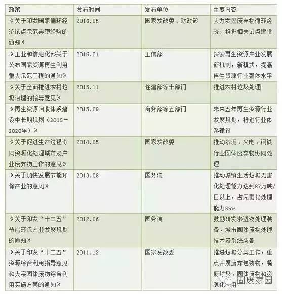 產(chǎn)品扶持政策不斷加碼固廢領(lǐng)域