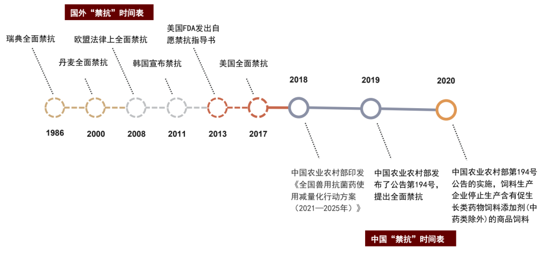 正因如此,“限抗”“禁抗”成了養(yǎng)殖業(yè)綠色發(fā)展的必然趨勢(shì),全球很多國(guó)家陸續(xù)推動(dòng)了各自“禁抗”進(jìn)程,我國(guó)也不例外。