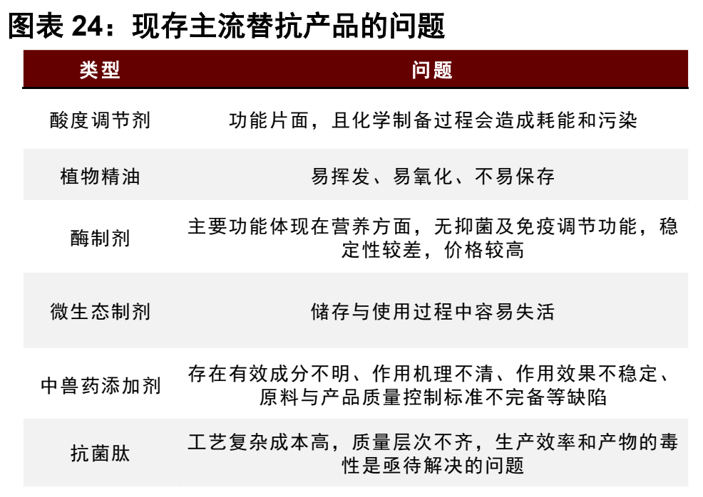 不過,抗生素雖然退出了舞臺(tái),但“它打下的那片江山”猶在,市場(chǎng)上也源源不斷地涌現(xiàn)出不同的抗生素替代品,微生態(tài)活菌制劑、酶制劑、酸化劑、抗菌肽以及天然植物及其提取物等,都是該領(lǐng)域的熱門“選手”。