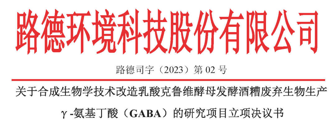 近日,湖北省科技廳公布了2023年省科技計(jì)劃立項(xiàng)項(xiàng)目(第一批)清單,其中,路德環(huán)境“合成生物學(xué)技術(shù)構(gòu)建工程菌發(fā)酵釀酒廢棄物生產(chǎn)γ-氨基丁酸和β-丙氨酸”科研項(xiàng)目,成功入選“科技人才服務(wù)企業(yè)項(xiàng)目”,獲得50萬元的科研經(jīng)費(fèi)。