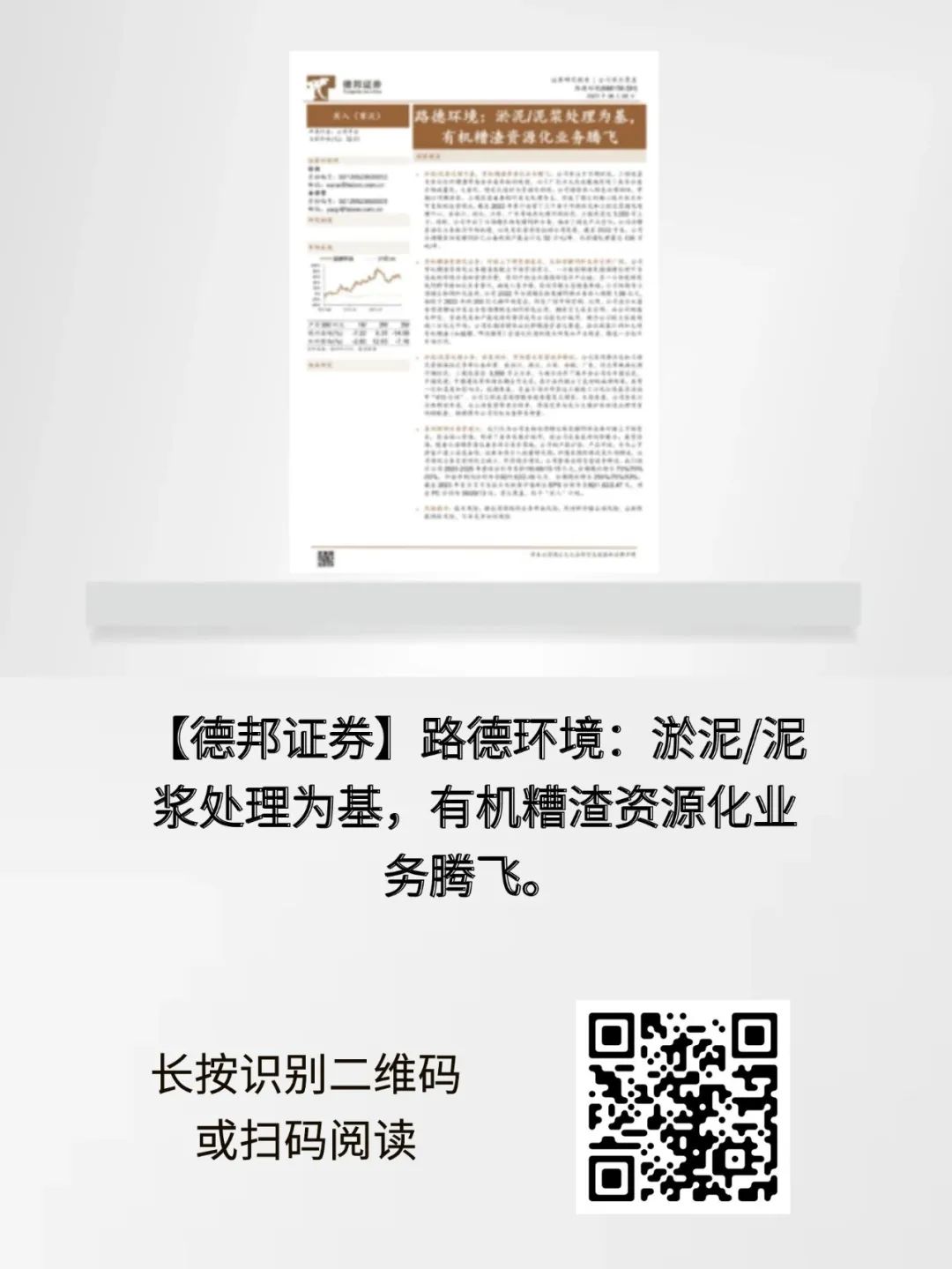 【深度研究報(bào)告】德邦證券《路德環(huán)境:淤泥/泥漿處理為基,有機(jī)糟渣資源化業(yè)務(wù)騰飛》