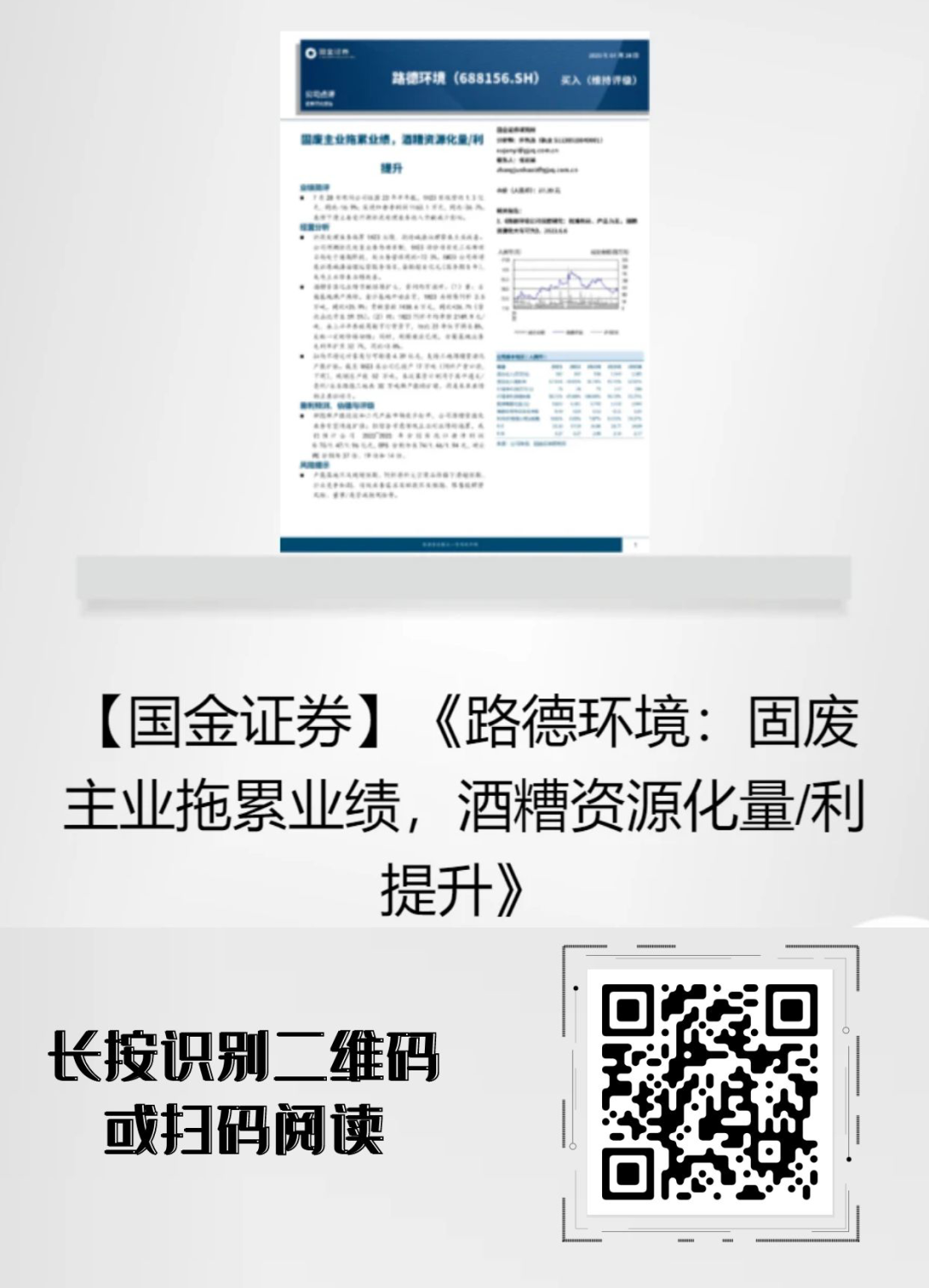 【點(diǎn)評(píng)報(bào)告】國(guó)金證券點(diǎn)評(píng)路德環(huán)境:固廢主業(yè)拖累業(yè)績(jī),酒糟資源化量/利提升。