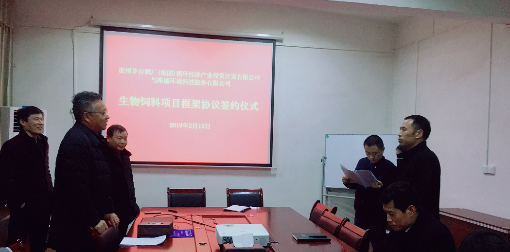 2019年2月15日路德環(huán)境科技股份有限公司與貴州茅臺酒廠(集團(tuán))循環(huán)經(jīng)濟(jì)產(chǎn)業(yè)投資有限公司就茅臺酒廠酒糟綜合處理制備有機(jī)發(fā)酵飼料項目簽署框架合作協(xié)議,并共同成立合資公司。